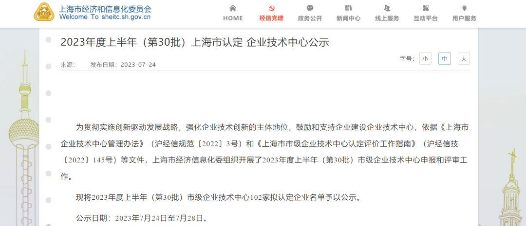 据悉,为贯彻实验立异驱动生长战略,强化企业手艺立异的主体职位,勉励和支持企业建设企业手艺中心,“上海市企业手艺中心”由市经信委组织评定,旨在挖掘本市手艺立异的领军企业,从而引领工业手艺前进和立异能力提升。因此,评审历程严酷,审核指标涵盖企业研发职员数目和质量、研发投入、知识产权、新产品销售以及所获奖项等多个维度。入选企业不但须在行业内处于龙头职位,并要具备显著的规模优势和竞争优势。
